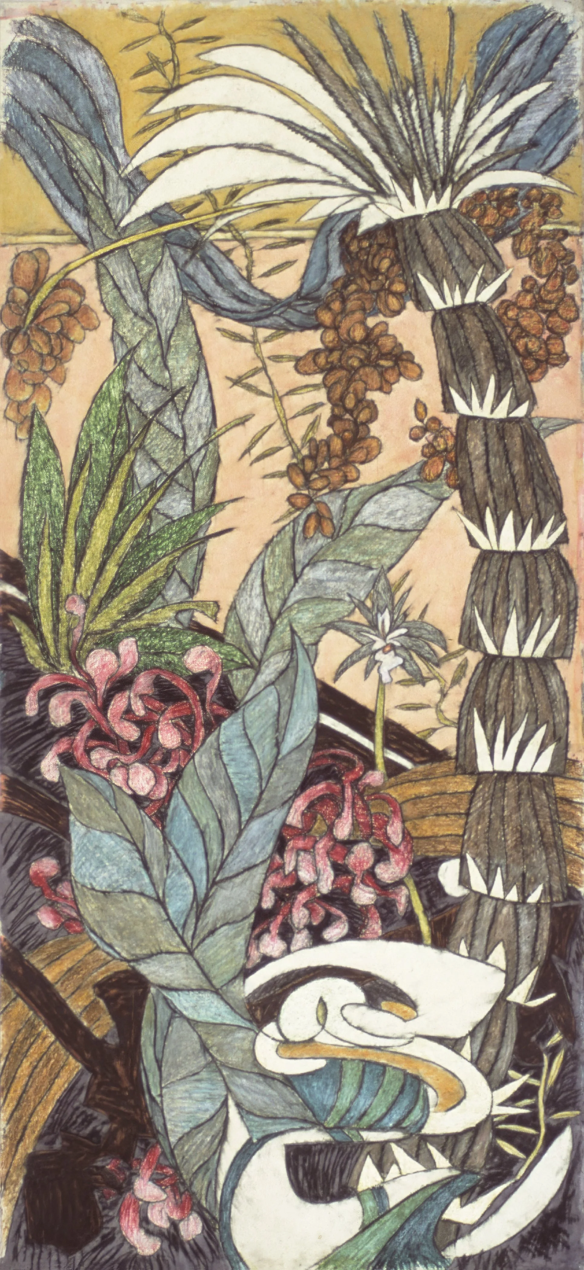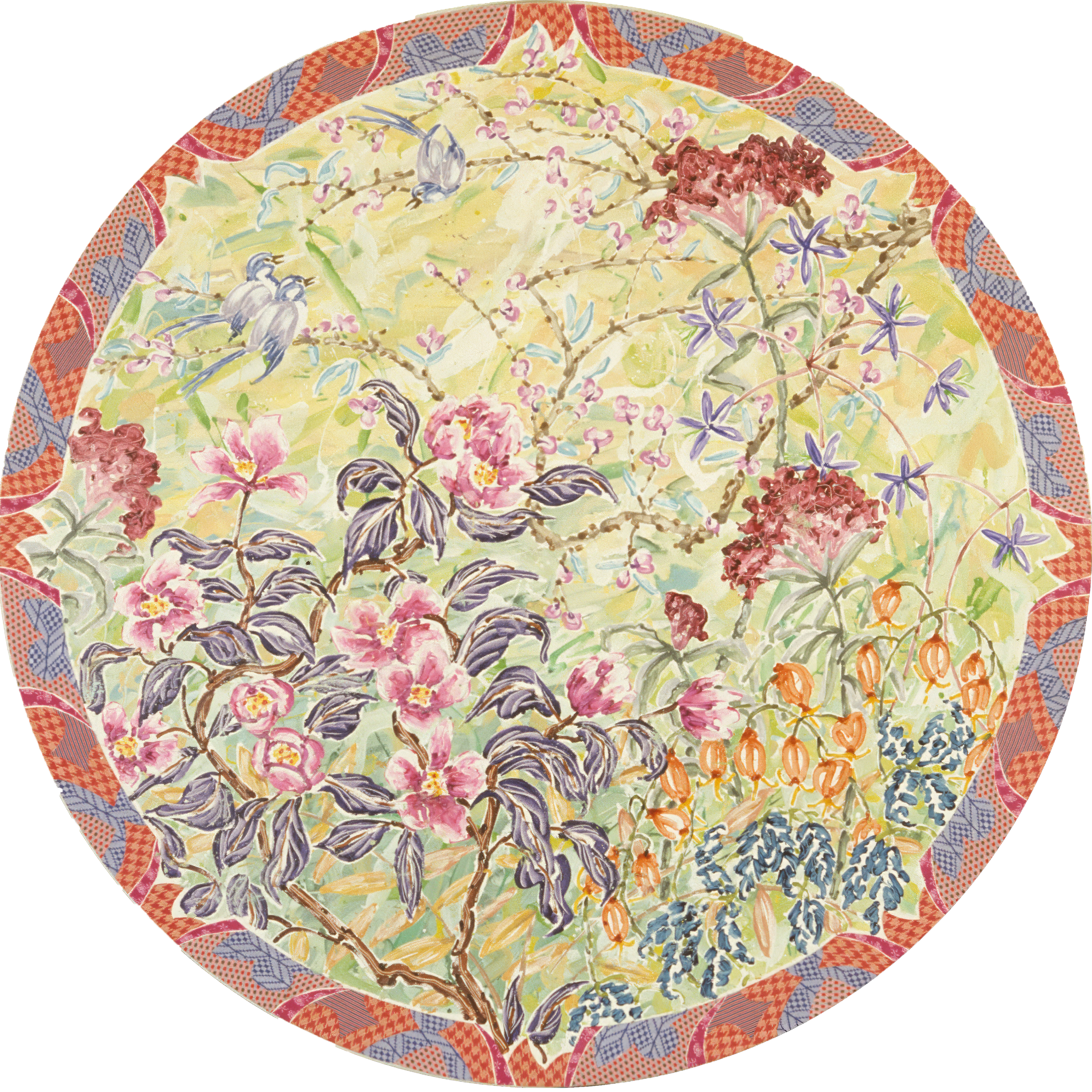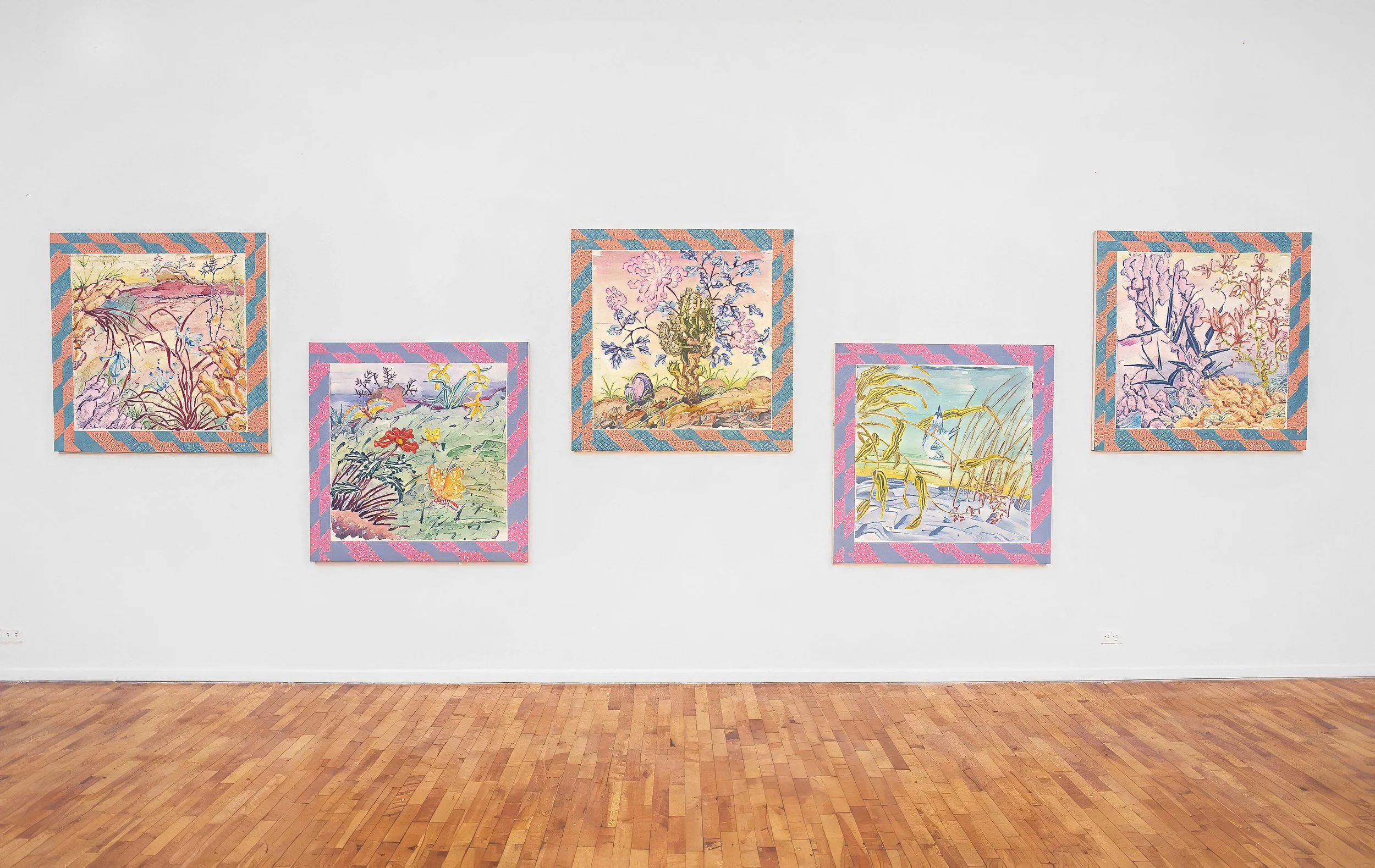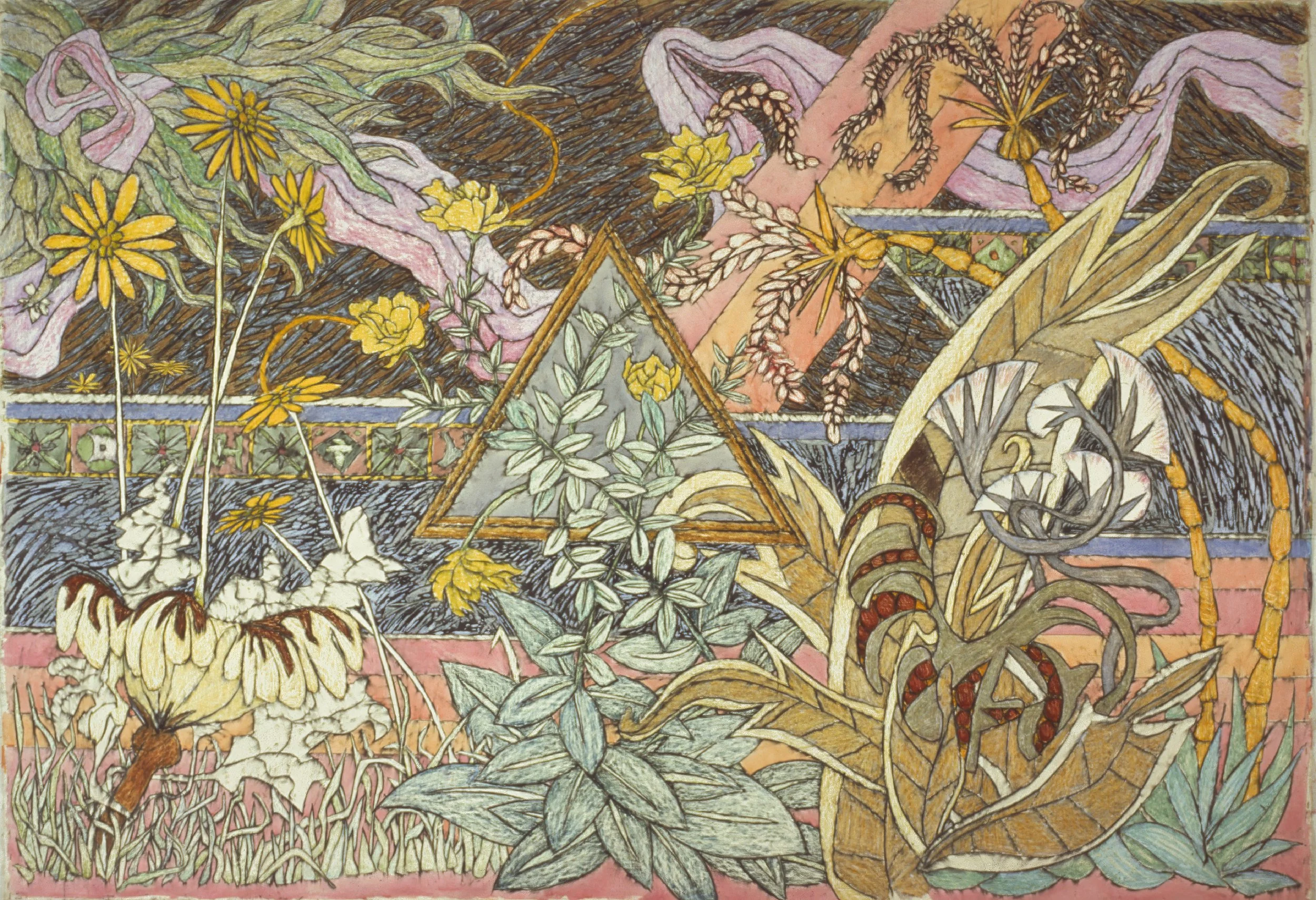 DECORATIVE LANDSCAPE, 1982-1983, acrylic, polyester on canvas, 72” x 120”