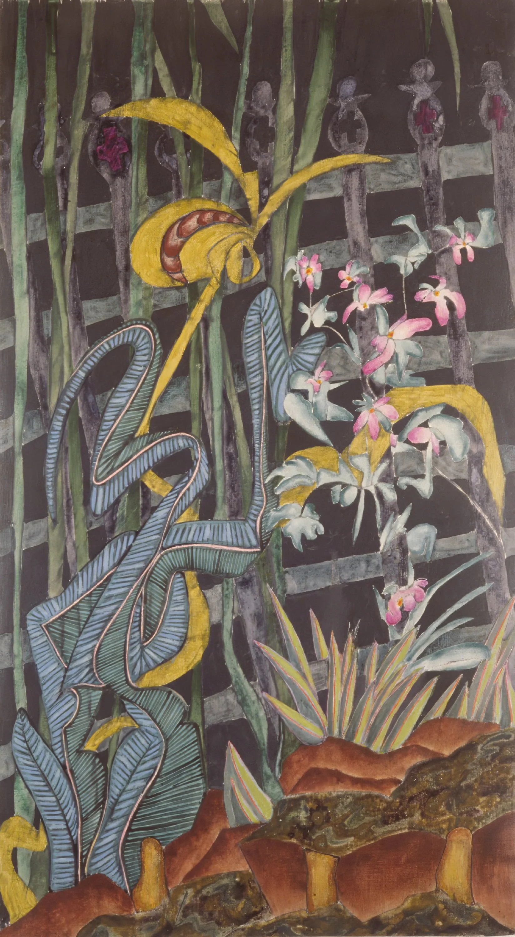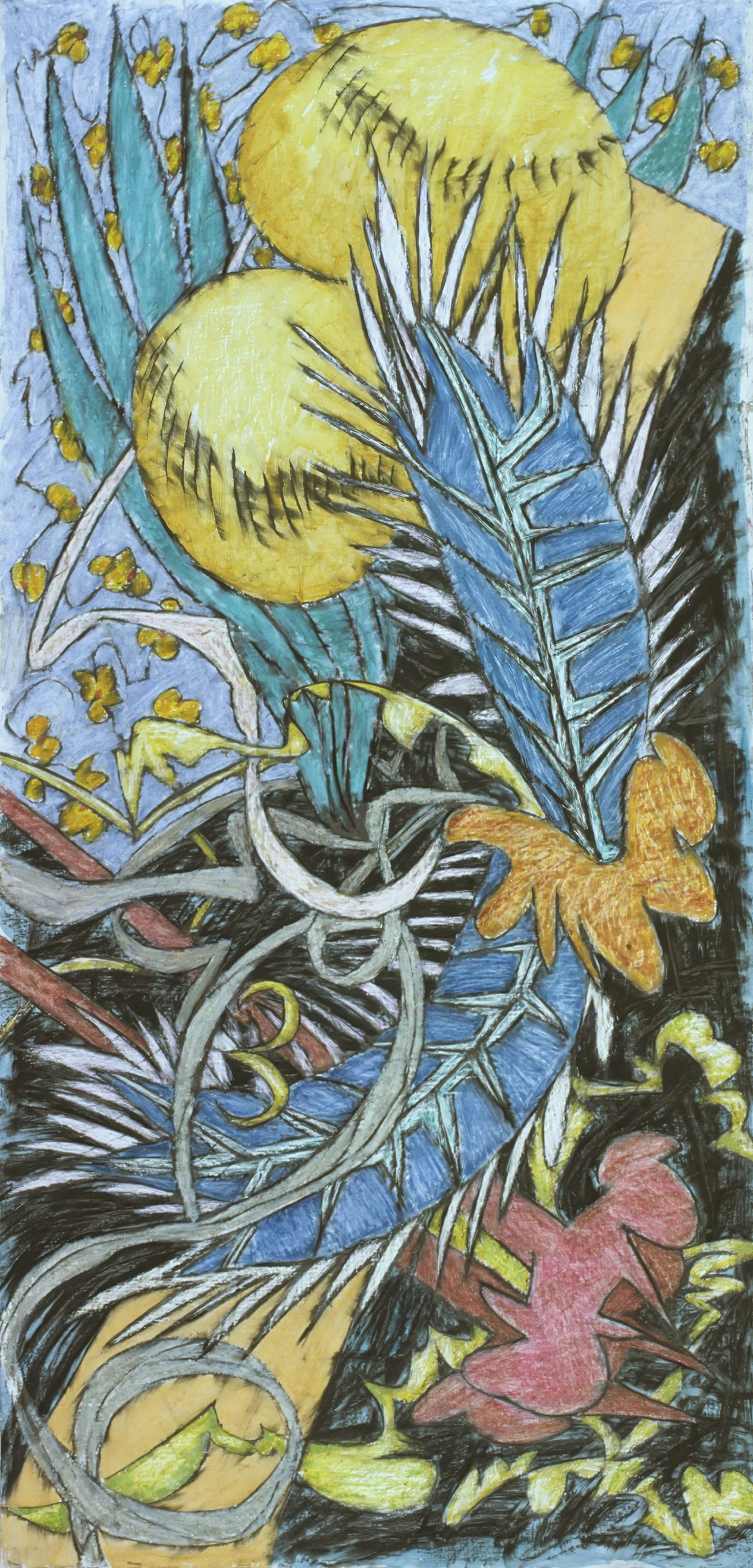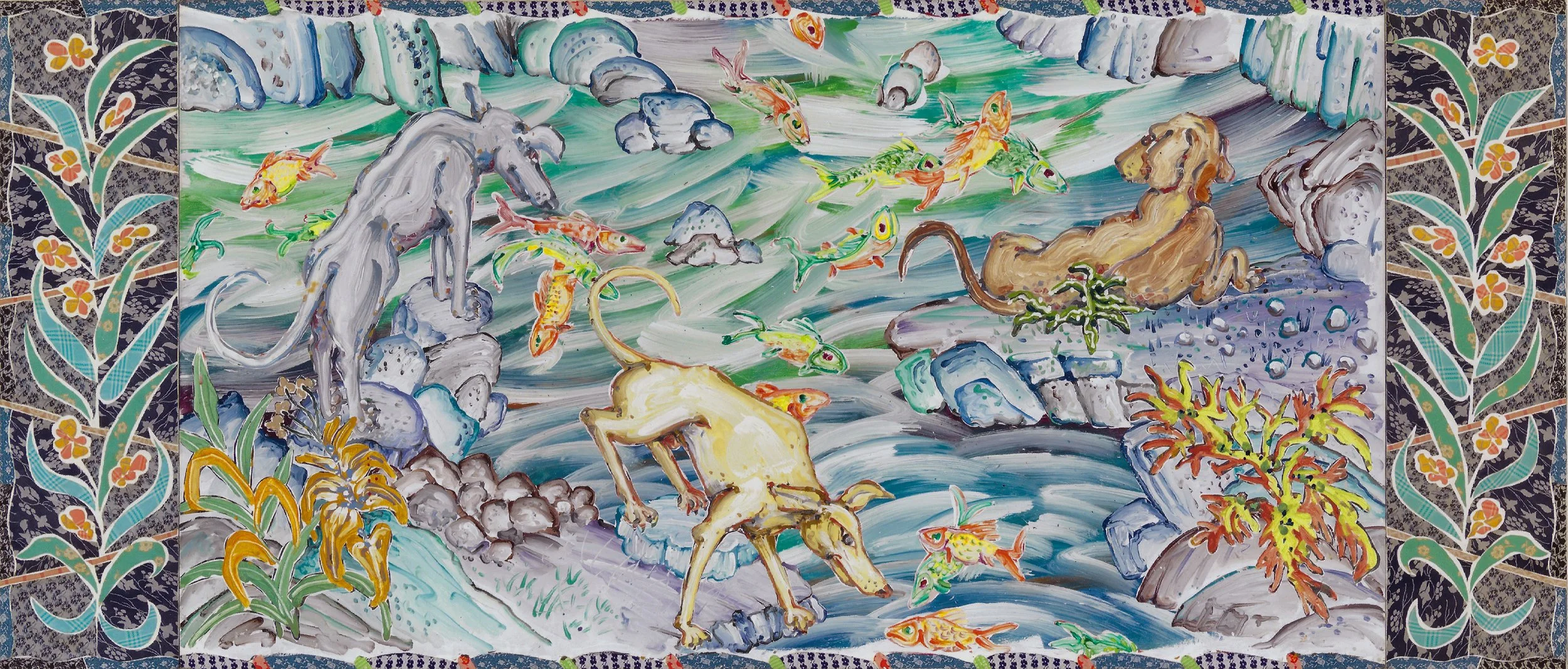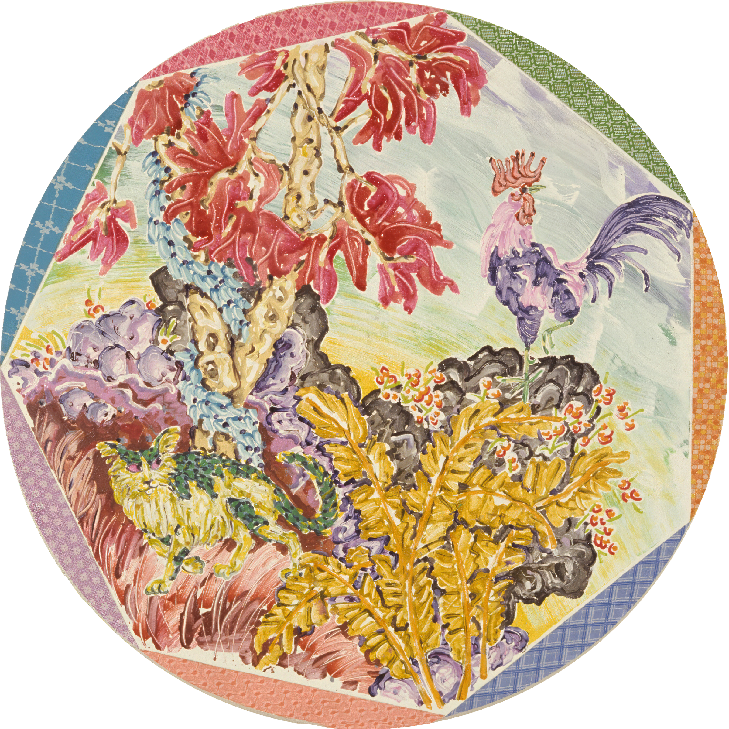DECORATIVE LANDSCAPE, 1982-1983, acrylic, polyester on canvas, 72” x 120”