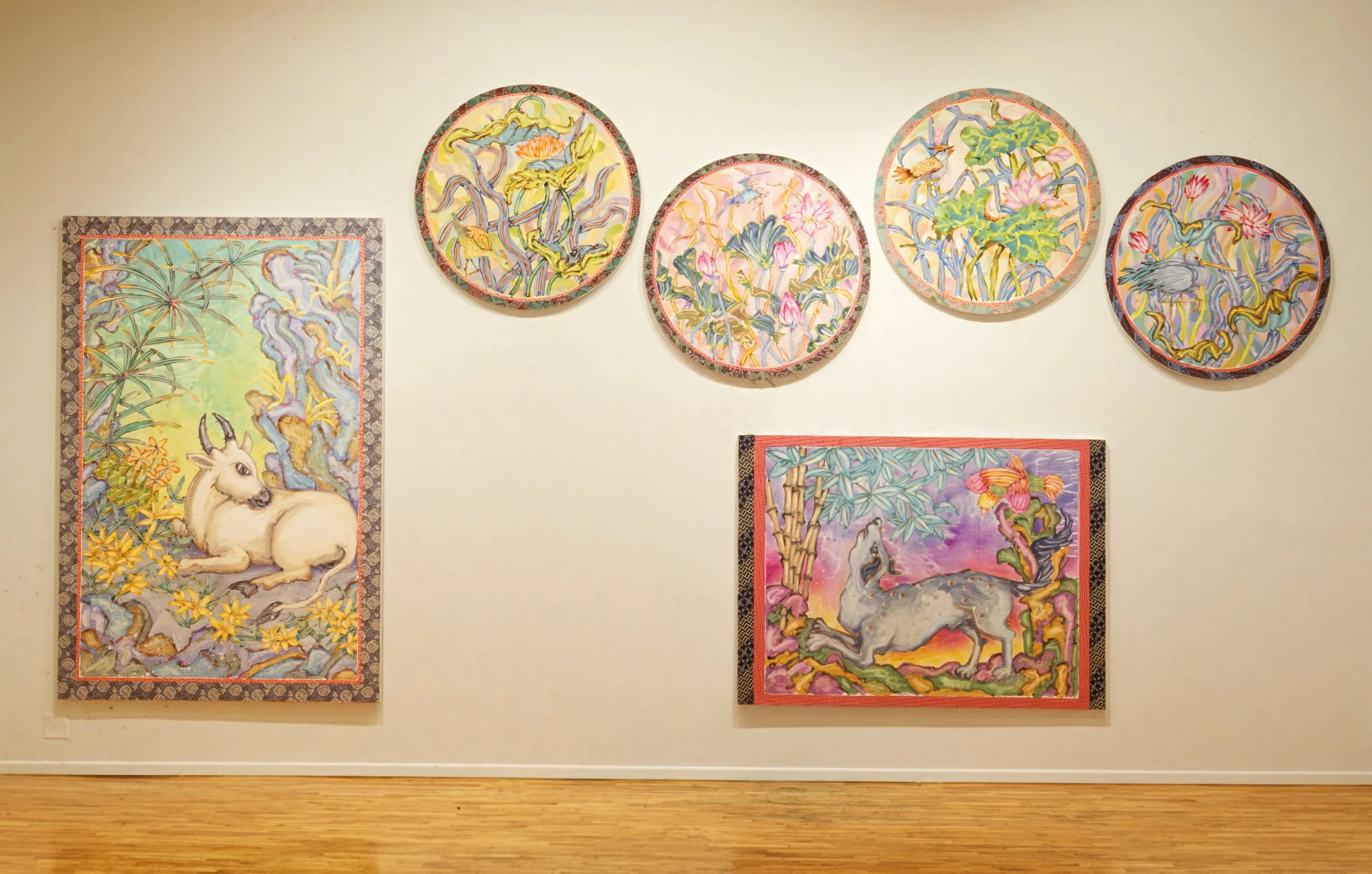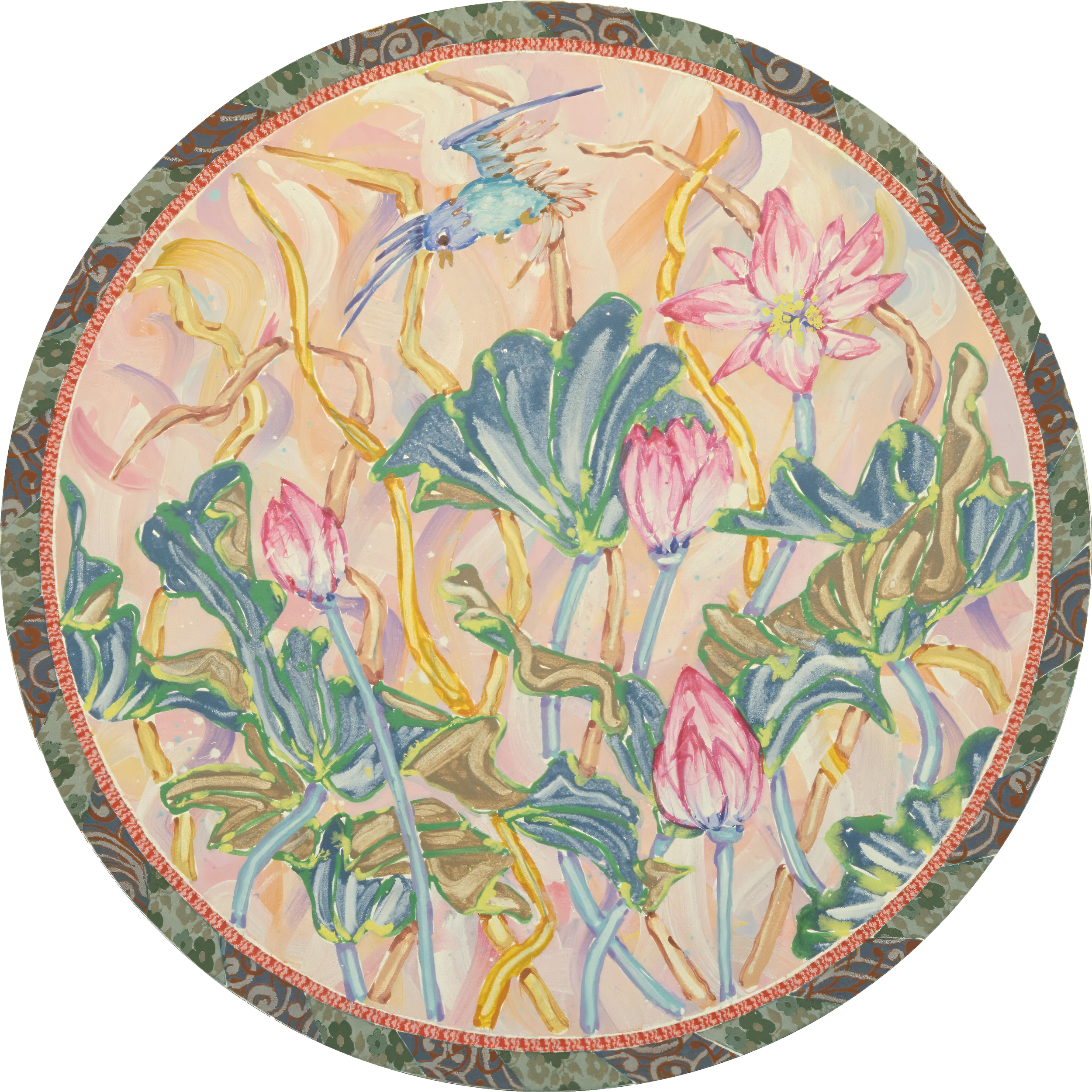 acrylic, oil, pastel, gold leaf, on canvas, 49” x 40”